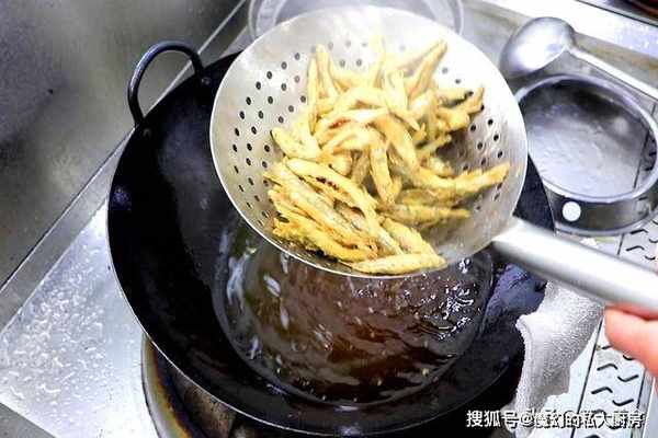 如果喜欢更焦酥一些的,可以升高油温至6成热,复炸30秒钟立即捞出,这一步同样是小焦鱼金黄不回软的关键。