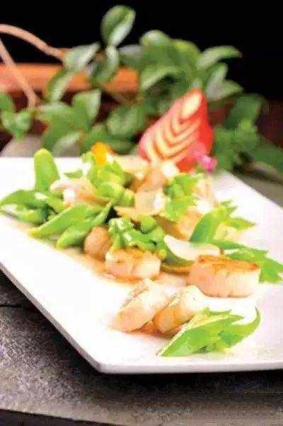 此菜将蒜片经过煎制后,带有浓郁的香味,搭配甘甜、脆爽的芥菜和细嫩、鲜香的带子一起翻炒,香味十足。