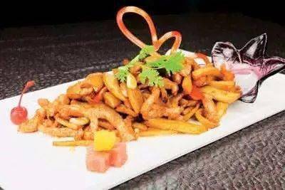 此菜是用杏鲍菇搭配羊肉一起炒制,成品色泽淡红,口感干香,咸鲜味浓,下饭下酒两皆宜。