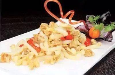这道菜用花生芽和海螺肉搭配炒制,口感脆爽,鲜味十足,是很多顾客都会点的一道菜品。