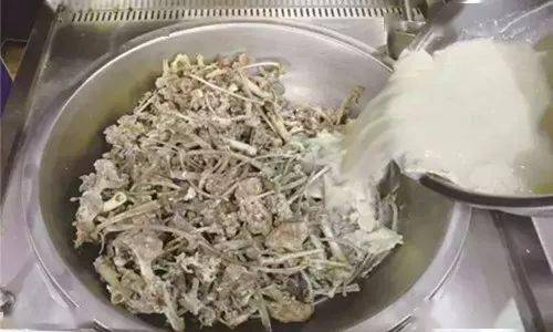 1、老母鸡3只(每只重约1500克),猪瘦肉2.5~3千克分别切大块,与鸡爪、筒子骨、猪扇骨各5千克一起入沸水中大火焯透,捞出控水。