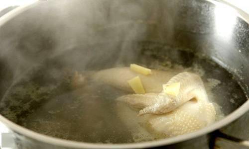鸡肉成熟后捞起,不需要过凉,待其自然晾凉,即可食用。入口鸡肉细嫩、皮爽、骨香,非常美味。而其它的鸡则不可以采用微火烹煮的方式,它们要在汤煲滚后离火浸泡,滚煮则会使这些鸡爆皮,既不美观,成熟后还要过冷,这都会影响到成菜效果。
