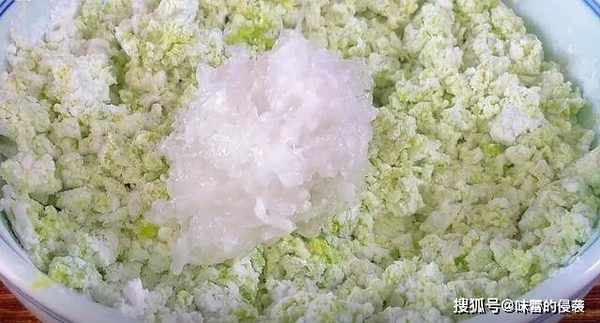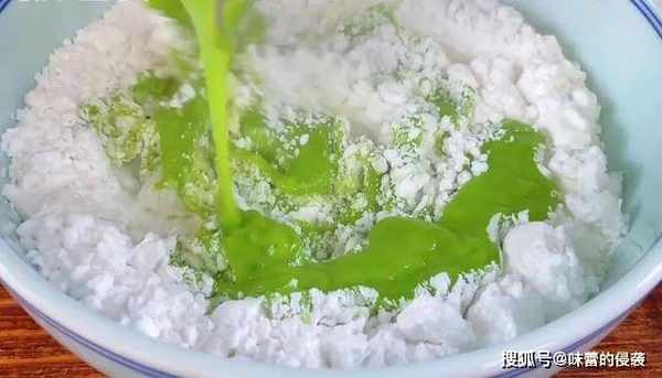 8.再一把倒在大碗里,上手揉搓成一个光滑细腻的绿色面团。