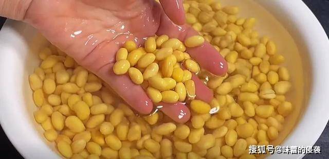 2.黄豆淘洗干净之后,提前浸泡一个晚上。