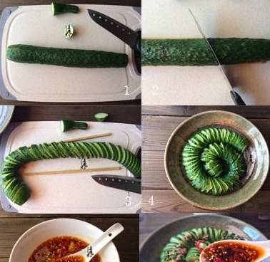 小贴士:切黄瓜的时候垫两根筷子可以防止你黄瓜切断