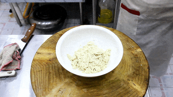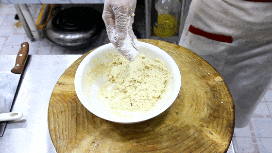 2.然后进行充分搅拌,使调味料和豆腐泥融合后在放入淀粉搅拌均匀。