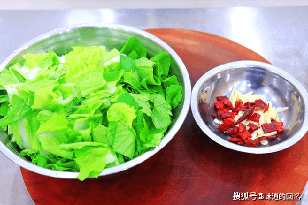 ,切掉根部,加入一勺食盐,洗净上面的泥沙和杂质,捞出来沥干水分,切成段备用。准备大蒜几粒,切成片放入盆中,再抓入一小把干辣椒备用。
