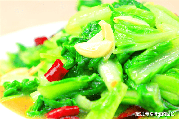 ,加入适量的植物油,油温五成热时放入蒜片和干辣椒一起翻炒出香味,再倒入小白菜,转中火翻炒至断生。