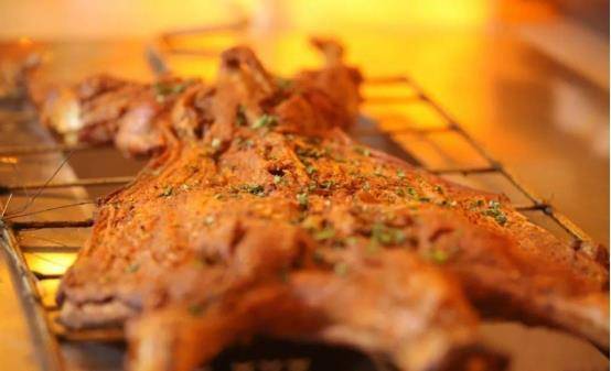 不一会,第二道秘制烤全羊也被端上了桌。据同桌的宾客说,这烤全羊是从内蒙古运过来的,一只羊大概在30斤左右,非常美,整只羊被端上桌,非常的抢眼。桌子上方散发的羊肉味瞬间钻进大家的笔尖,太诱人了。