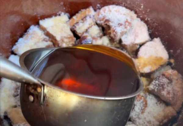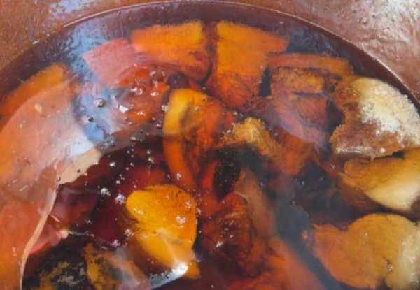 腌缸肉需要用纯正的胡麻油、秘制的香料来做,不过最重要的还是那一口老缸,可能已经传了上百年。把肉切成一块块,下清水加葱姜去味煮熟,沥干水分后下油锅炸,炸好之后已经是半成品,可以直接撕开来吃。等肉放凉后,撒盐、五香粉等等搅拌均匀,然后放在土坛子里面,一块块摆放均匀,最后倒入猪油,让肉块浸泡在猪油里存起来慢慢吃。