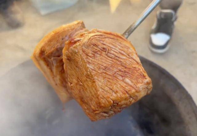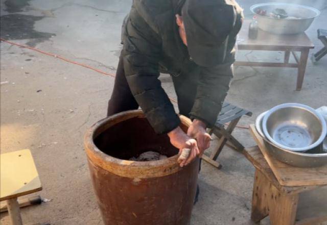 每年腊月,甘肃人会猪庆祝,猪头猪大骨猪下水和新鲜的猪肉,会做成一道道美味的猪菜,俘获众人的心和胃,不过一头猪少说也有一百多斤,剩下的肉很容易坏掉,所以当地人就会做成腌缸肉,保存时间长,可以吃很久。在甘肃的十里八乡,一百户人家就有一百种腌缸肉的味道。