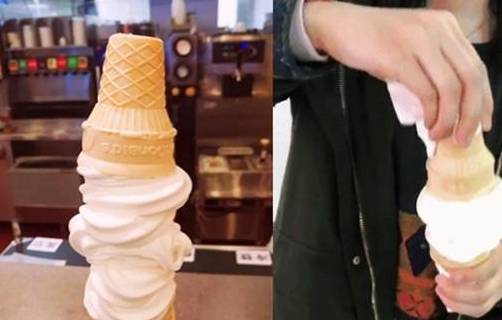 首先是麦当劳第二杯半价的甜筒,单身狗一个人吃两份感觉太可怜怎么办?小事情,只要这样在一起轻轻扭一扭,马上就变成一个超豪华的大甜筒,对于吃货来说,简直不能更满足!
