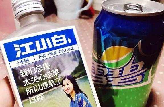 除了葡萄酒,抖音上还有一种方法,是在杯子中放一点江小白,接着再把雪碧倒进去,迅速地把纸巾放在杯子上,然后再摇一摇,会有意想不到的收获哦~