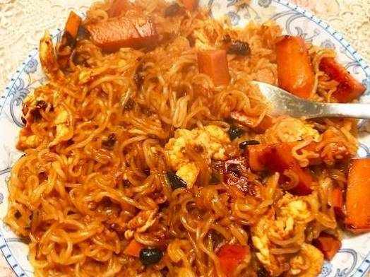 还有这个炒方便面,作为一个有追求的吃货,怎么能只会泡方便面呢?炒方便面其实非常简单,就是煮好之后随便炒,加什么调料都随你高兴,只要不是厨房杀手,都是妥妥的美味!