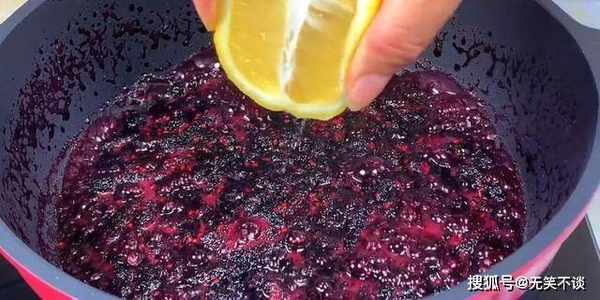 6.冰糖炒至融化,桑葚炒烂炒出汁水的时候,挤入几滴柠檬汁,可以增加口感,延长保存时间。