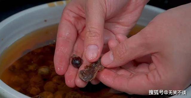 5.桂圆泡发好之后,将果肉剥出,剔除果核。