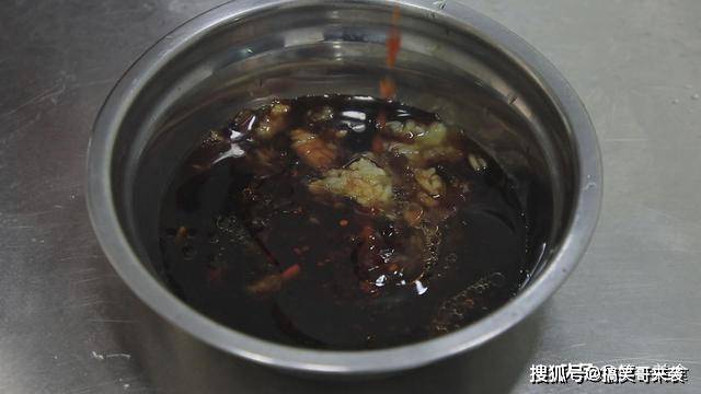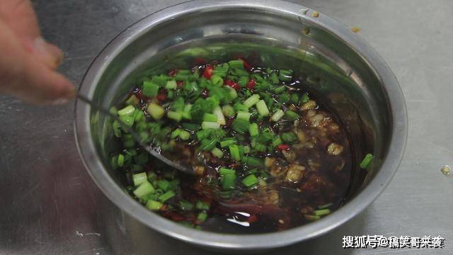 在装着蒜泥的小盆中开始调汁,倒入