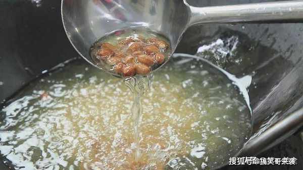 炸花生米时要注意,不要等到花生米变色 ,花生一旦变色捞出来就已经炸老了,凉油放入花生米,听到十多声噼啪声,花生米马上捞出来就可以了。
