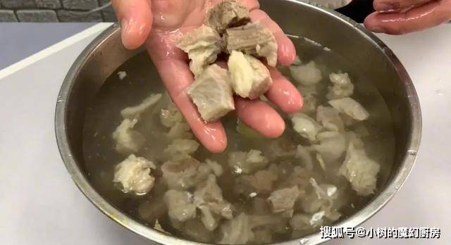 2、焯水过的牛肉,放清水中洗净。
