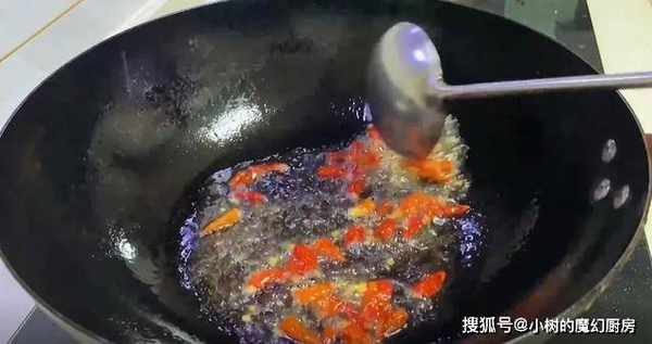 10、继续热锅放油,倒入小米椒爆香。