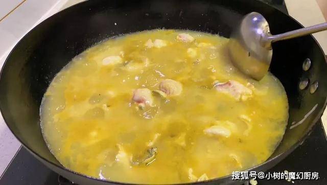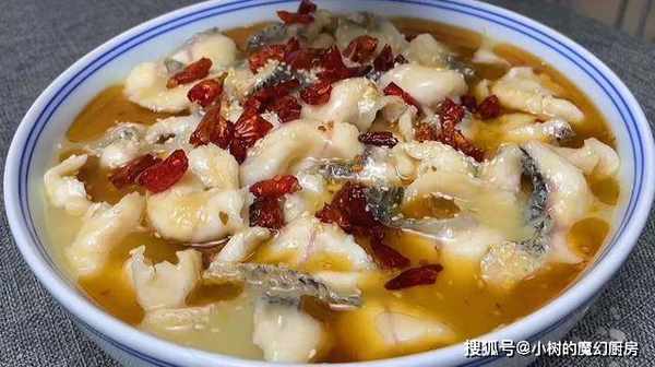11、爆香的小米椒,倒在酸菜鱼中。