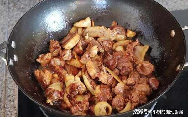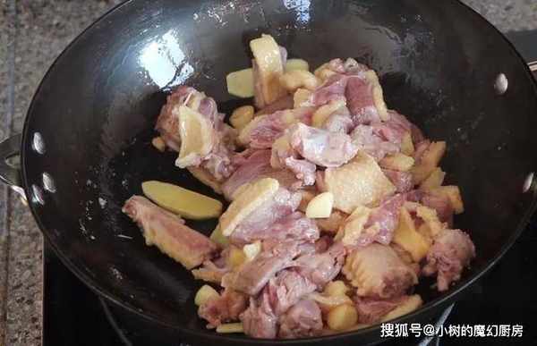 5、倒入鸭肉,炒出鸭油。