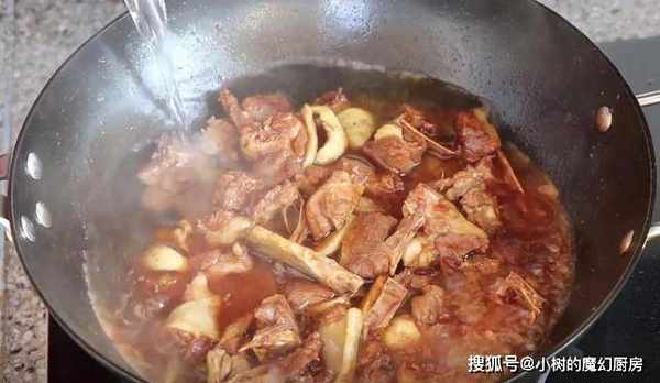 7、倒入八分满清水,另外放老抽上色调味。扣锅盖,炖3分钟。