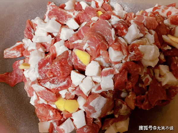 1、准备1800克后腿肉,这是剔除干净以后的重量,猪肉买回来,看看有没有筋膜,肥肉筋等,为了不影响口感,都需要剔除,切成小四方丁,千万不要绞碎,那样不好吃。
