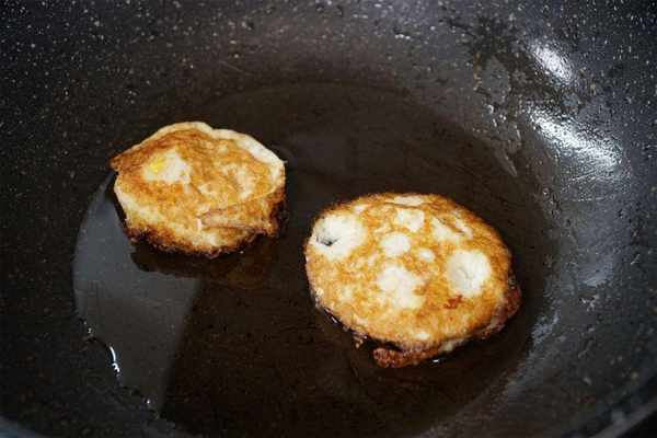 3、锅中留底油,油中先放入一小勺盐进去,将油和盐用锅铲铲开,待油热把鱼放入锅中用中小火慢煎,鱼放进锅中不要随意翻动可以适当的晃一下锅,两分钟后煎至定型后再给鱼翻个身煎另一面,两面都煎至金黄。