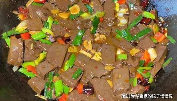 7、这道炒羊血,吃起来鲜嫩柔软,汁水入味,鲜香好吃。比一盆肉还要下饭美味。如果不知道怎么煮羊血的话,大家一定要学会我这一种做法,吃过一次就还想再吃第二次。