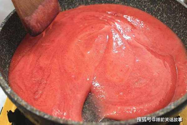 平底锅烧热,啥也不要放,把山楂泥倒进去,加入白糖30克增加甜味,不停地用木铲翻动,让山楂泥均匀受热。