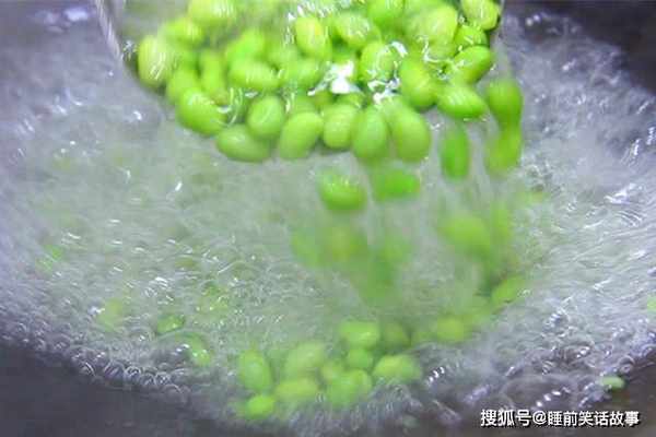 锅内烧水,先放入毛豆焯水片刻,捞出水面上的豆皮和浮末,毛豆焯熟以后捞出来,快速用凉水冲一下,这样吃起来口感更嫩还脆。