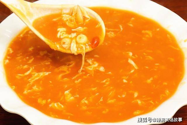 15分钟以后淋入适量的水淀粉,把汤羹收浓,再淋入蛋液,等蛋花全部飘起来就可以出锅食用了。
