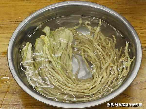 起锅烧水倒入料酒,羊肉凉水下锅,水开以后就可以倒出来控水;锅里重新加水,把萝卜干焯水1分钟。
