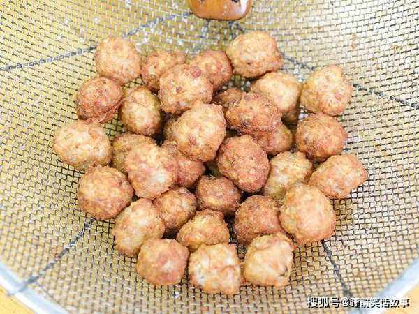 油温五成热时,把丸子沿锅边滑入锅中保持小火炸制,炸成金黄色捞出来控油。