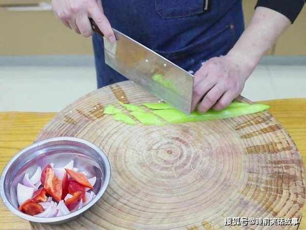 半个洋葱切成片;一个青红椒也都切成片;再切一点姜片、蒜片和葱花放在一起;喜欢吃辣的朋友还可以加点小米辣。