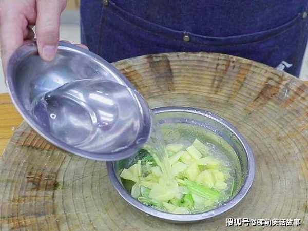 大葱拍撒切成段;生姜也拍散切成片放在一起,加入食盐、清水充分揉出里面的葱姜水。葱姜水的去腥效果更好,还能给肉馅补充一部分水分,这样藕丸吃起来更加的嫩滑有弹性。