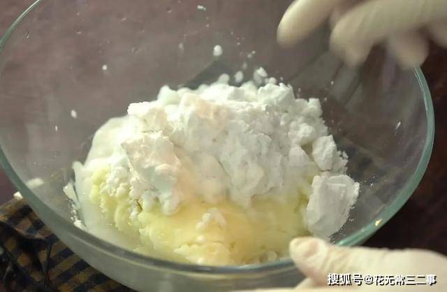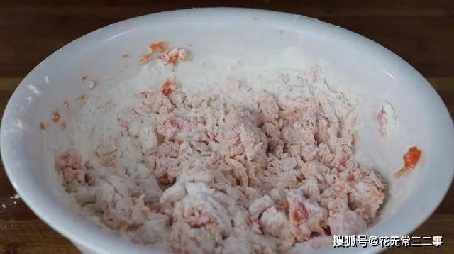 2、接着碾碎,混合面粉搅拌。