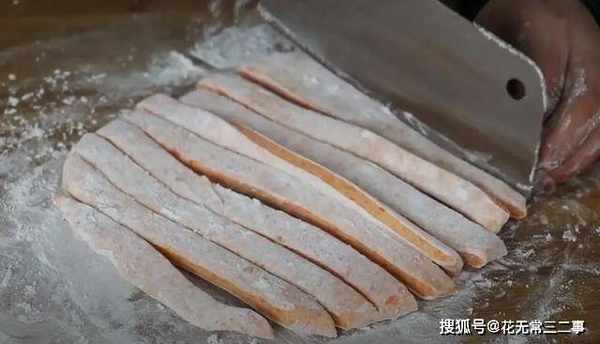 3、变成面团后切成条状。