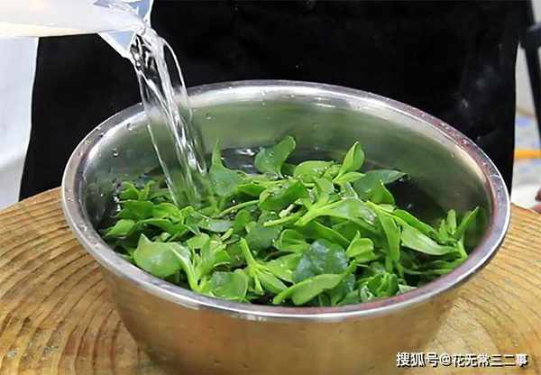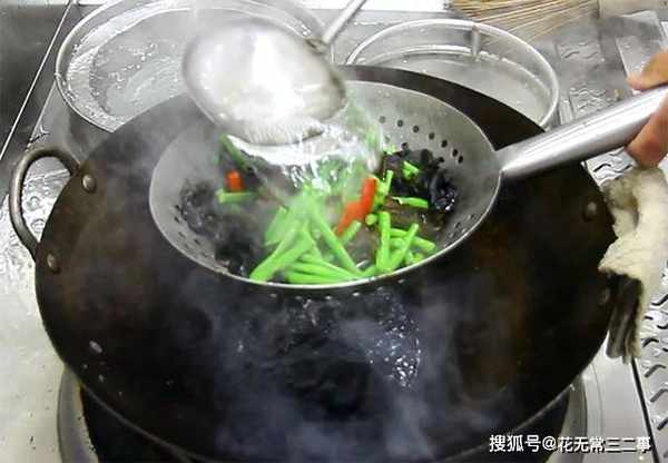 2.烧半锅开水,淋入一些植物油锁住营养保持色泽,加入少许食盐增加底味,倒入荷兰豆快速焯烫10秒钟,荷兰豆断生以后立即捞出过凉,荷兰豆不要煮太久,否则吃着不够清脆清甜。