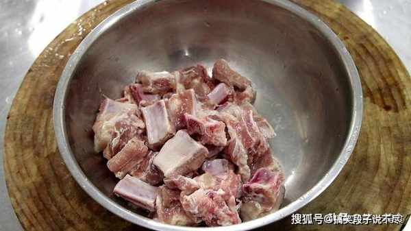 1.首先我们准备一下食材,排骨500克,剔开后剁成大小均匀的小块放入盆中,加入小苏打1勺,食盐2勺抓洗出排骨中的血水,洗净后捞出,放入盆中,准备下一步腌制。