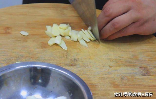 大葱白一小段切成马蹄片,生姜切成姜片。大蒜几粒切成蒜片与葱姜一起放在盆中。