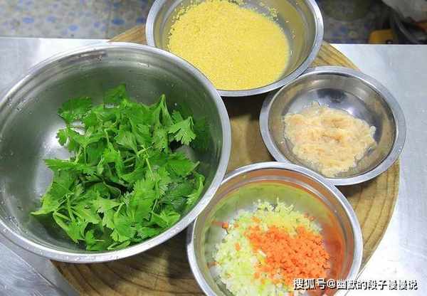 1.新鲜的芹菜一把,摘下一点嫩的芹菜叶放在盆中清洗干净;准备一点小米,提前用清水浸泡,小米多泡一会儿更容易煮熟;切点姜末、葱花、胡萝卜粒;再准备点鸡肉丝备用。