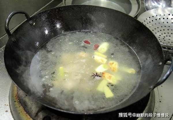 3.锅内烧油,油热以后放入葱段、姜片等,倒入排骨快速翻炒几下,加入适量的清水,清水要一次加够,切记不要中间再加水,盖上锅盖炖20分钟。
