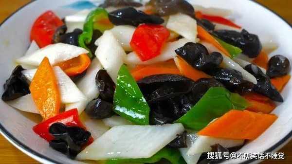 主要食材:山药、木耳、胡萝卜、青红辣椒等。