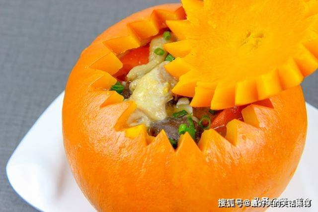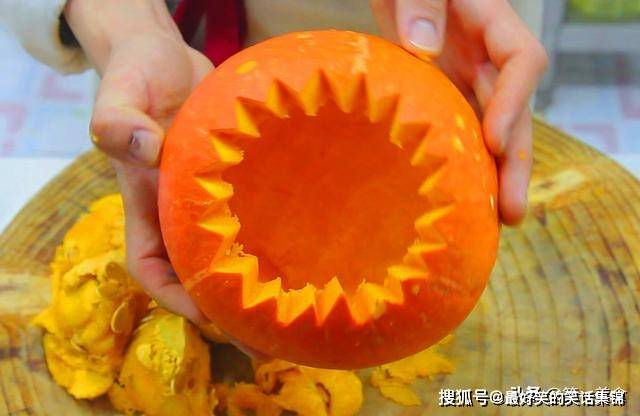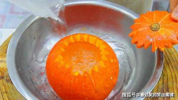 两分钟后,一个非常漂亮的南瓜盅就做好了。
