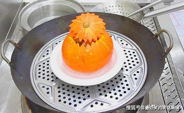 接下来锅内再烧水,放上蓖子,然后把南瓜盅放在蓖子上蒸。