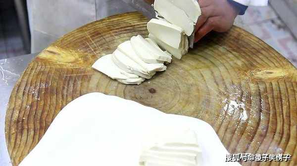 1.首先用清水将豆腐清洗干净,然后将豆腐切成片,把豆腐码整齐,放入盘中备用。