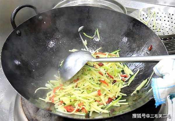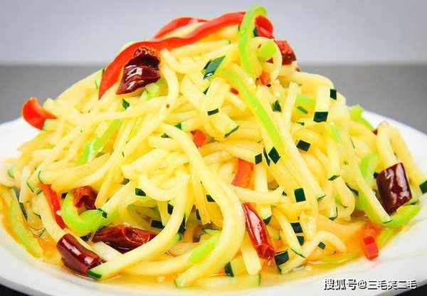 5.好了,一道开胃下饭的醋溜南瓜丝就做好了。