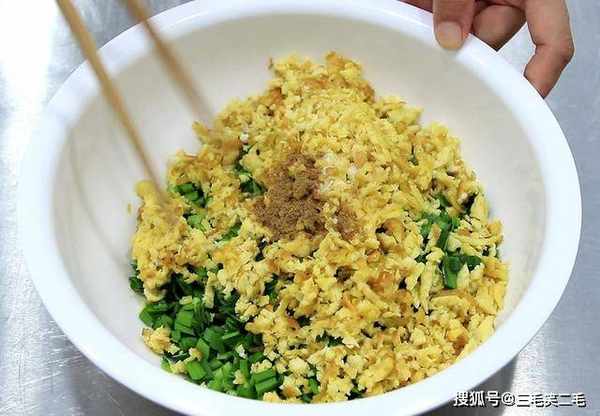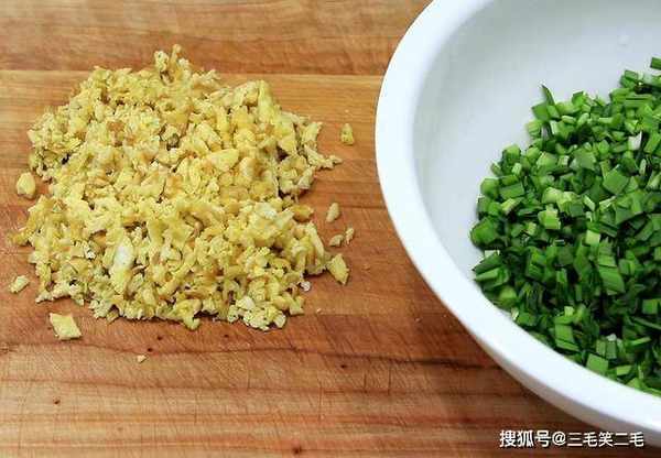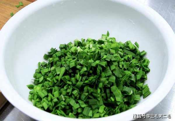 1.准备适量的韭菜,清洗干净后切碎放在盆中备用。